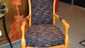 Rénovation du tissu de recouvrement avec un velours multicolore sur lin,